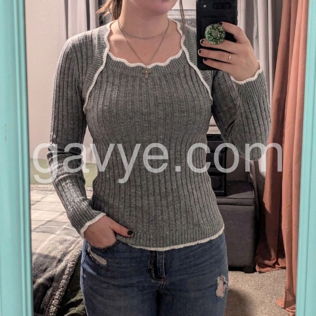 Grey Square Neck Long Sleeve Sweater