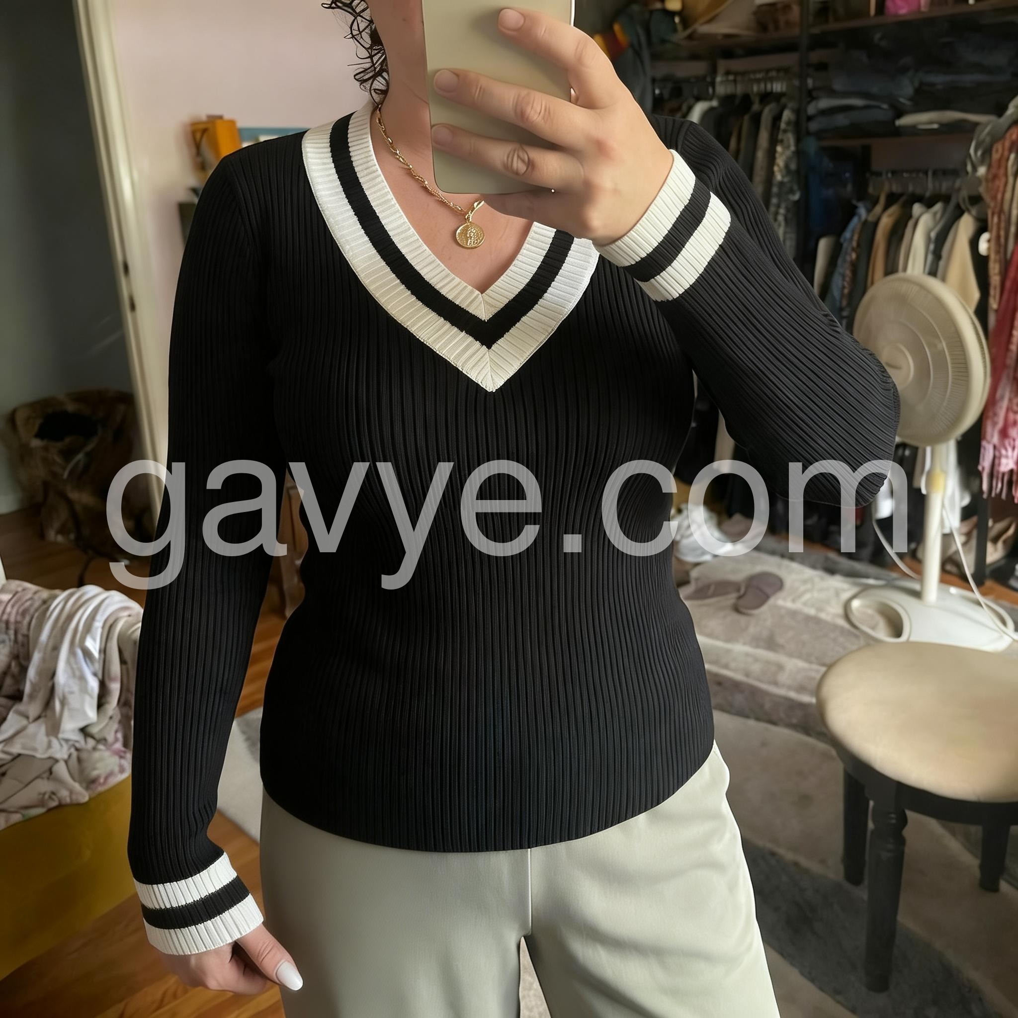 - Neckline: V-Neck