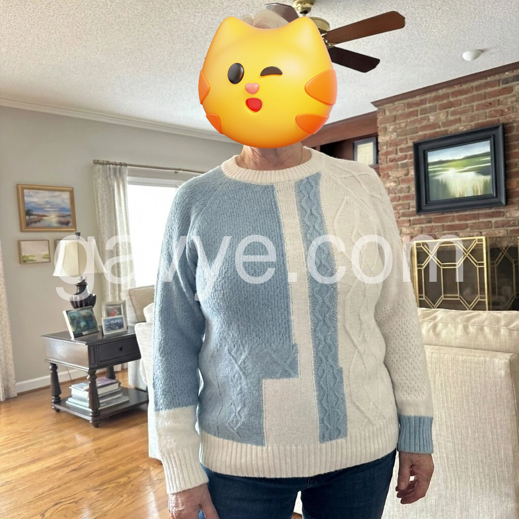 Blue Round Neck Color Block Sweater